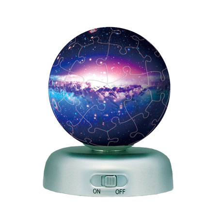 暗い部屋で光らせると、そのパズルの色合いが効果的に働いて、綺麗な月の様に光る設定になっています。