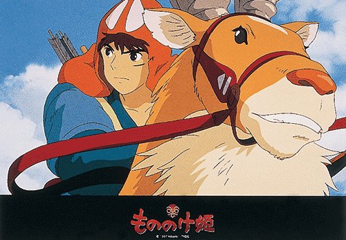 山犬とヤックルにまたがり、各々の住むべき場所から視線を合わせている二人。