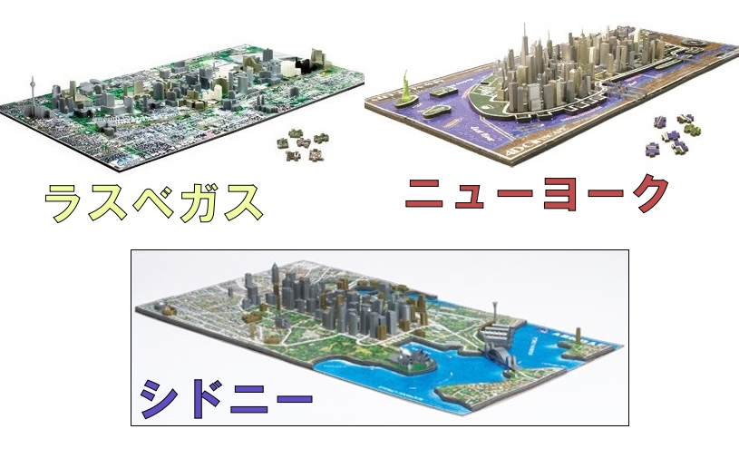 アメリカの【ニューヨーク】【ラスベガス】と、オーストラリアの【シドニー】の都市をを模した4Dパズルとなっていますが、もともと一番上の画像にある「5都市」で始まったシリーズなので、色々と都市ラインナップも順調に増えているようですね。