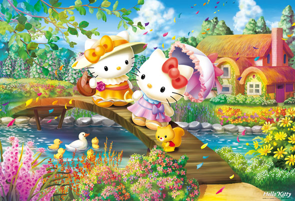 橋の上にいるのはキティとミミィの双子姉妹だと思いますが、仲良くおしゃべりしながら橋を渡っている姿が伺えます。(隣にいるリスは「ローリー」とやらでしょうか)