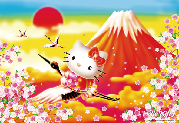 鶴に乗った着物姿のキティと、バックには「赤富士と日の出」と、お正月や年越しのシーズンにも飾るのにもピッタリな絵柄ですね。 300ピースのパズルで絵柄としても手軽にチャレンジ出来る内容になっていると思うので、今冬のコタツ上の娯楽として楽しむのにもピッタリかと思います。