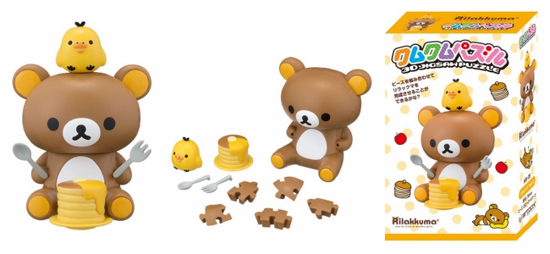 これは上に紹介したのとは別デザインのパズルとなっていますが、キイロイトリを頭に乗せたリラックマがパンケーキを食べる姿をもした非常に愛くるしいモデルとなっています。 クムクムパズルはもちろん一度組み立ててからバラしてまた遊ぶことも出来ますが、完成後は飾る楽しさもまたありますね。 ファンの方はインテリアとしてもバッチリです。