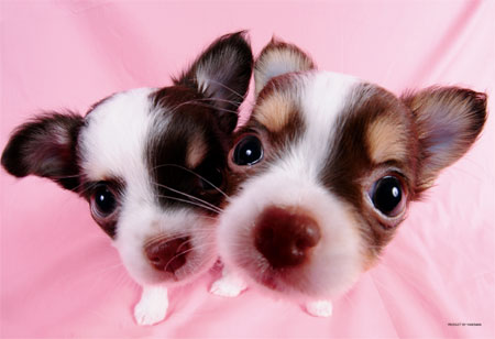 チワワの子犬二匹組、こちらも大きな瞳でこちらを見つめてきやがるので、こっちとしてはもはやただひたすらナゴナゴするしかなくなりますね。というか個人的に、右側のワンちゃんの太い眉毛ののような模様がたまらないです。