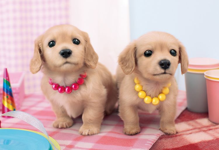 子猫が穴に入れば子犬も穴に入るという、犬のパズルも猫と一緒に熱い絵柄が多いと思います。 このチワワの子犬達も真珠のようにオサレな首輪をしているようですが、これは最近の流行か何かなんでしょうかね。 しかし非常にゴージャスなのは間違いありません。