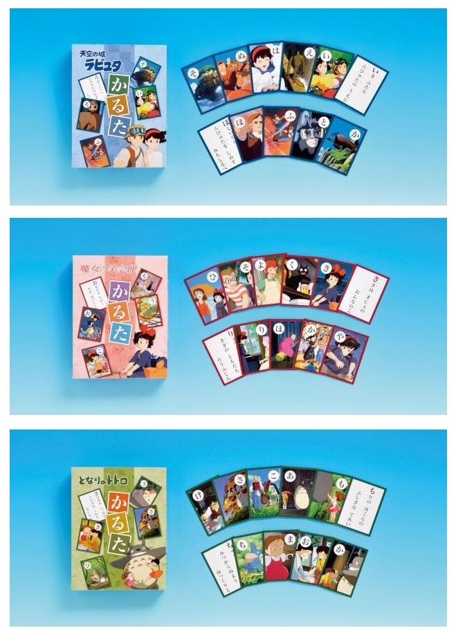 これらは「天空の城ラピュタ」「魔女の宅急便」「となりのトトロ」ということで、ジブリを代表する絵柄で作られた「かるた」となっているようです。