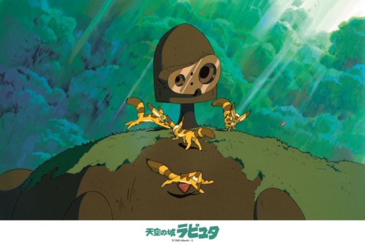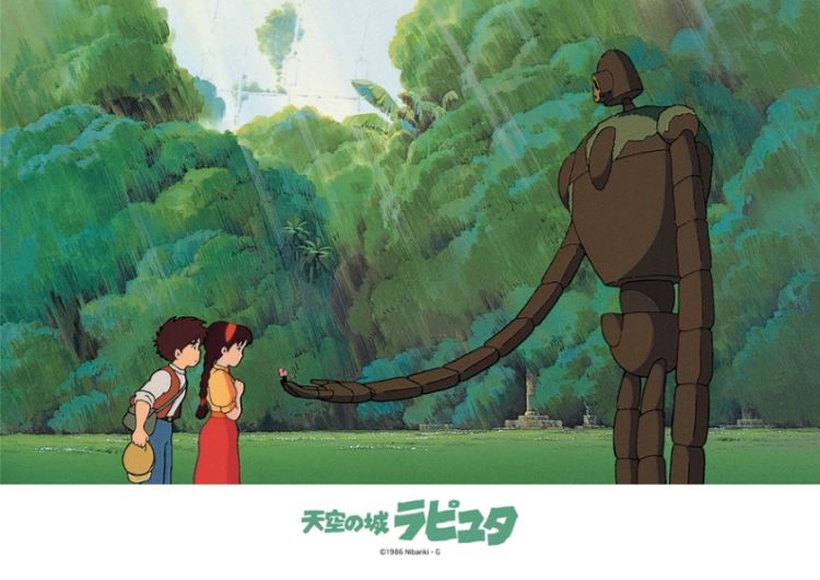 シータに花を差し出すロボット兵。 この映画が公開された当時は現在よりも世界の7不思議や古代ミステリーのような空想ロマンが熱かった筈ですし、実際ラピュタの様な空に浮かぶ城があったら行ってみたいと冒険心をくすぐられるものがある作品だと思います。