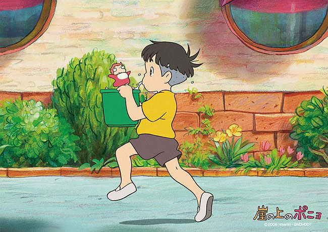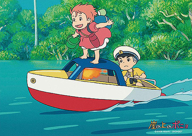 ポニョの躍動的で無邪気なアクションは、恐ろしげな嵐の画面を一気にファンタジーに変える力がありますね。