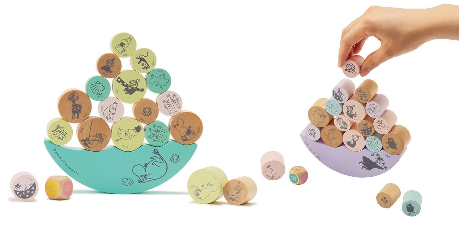 また、ムーミン版は【L】【S】等とピースのサイズが書かれた「サイコロ」がついてくるので、それを振って「出た目に合わせてピースを積み上げていく」というだれかと対戦ゲームを楽しんで見るのも面白いかも知れませんね。