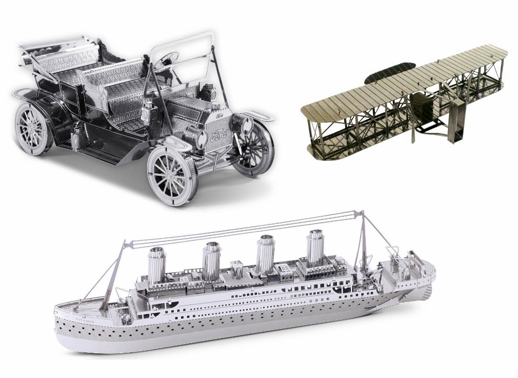 上の写真にあるものは「1908年式フォード」「タイタニック号」。 そしてライト兄弟が初めて260m程の飛行機に成功させたという事で有名な「ライトフライヤー号」です。 (セットではなくそれぞれ別売です。)